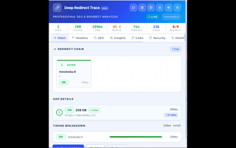 Este programa proporciona un análisis exhaustivo de las redirecciones, incluyendo códigos de estado HTTP y redirecciones JavaScript. Además, ofrece información sobre encabezados de seguridad, métricas de rendimiento y un panel de análisis en la página actual. La capacidad de exportar datos en formatos JSON o CSV y su diseño optimizado para la productividad hacen de Deep Redirect Trace una herramienta esencial para quienes trabajan en SEO y desarrollo web.